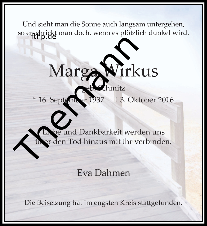 | Tod eines Ehemanns | Hermann Josef Wirkus 9. September 2011 (Alter 73 Jahre) |