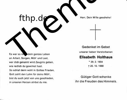 | Death of a husband | Hermann Holthaus August 31, 1973 (Age 69 years) |