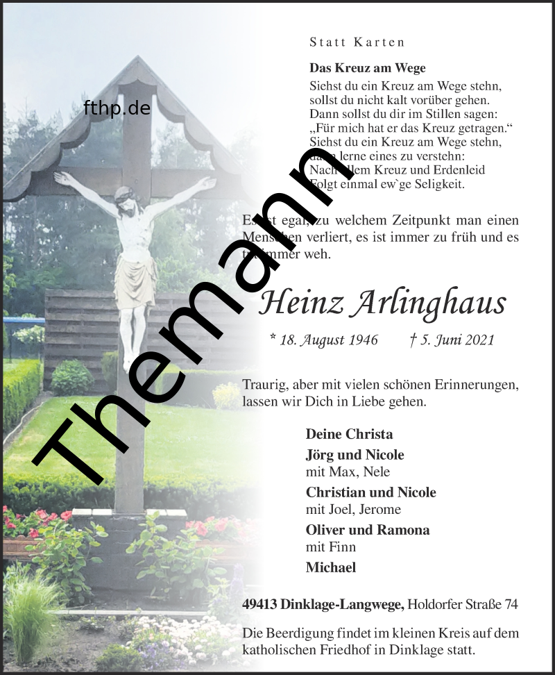 | Death | I2714 Heinz Arlinghaus-Traueranzeige.jpg Format: image/jpeg Image dimensions: 800 × 972 pixels File size: 944 KB Type: Photo |